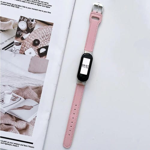 Correa de Reloj de Cuero para Xiaomi Mi Band 5 y 6 con 8 Hebillas (Rosa)