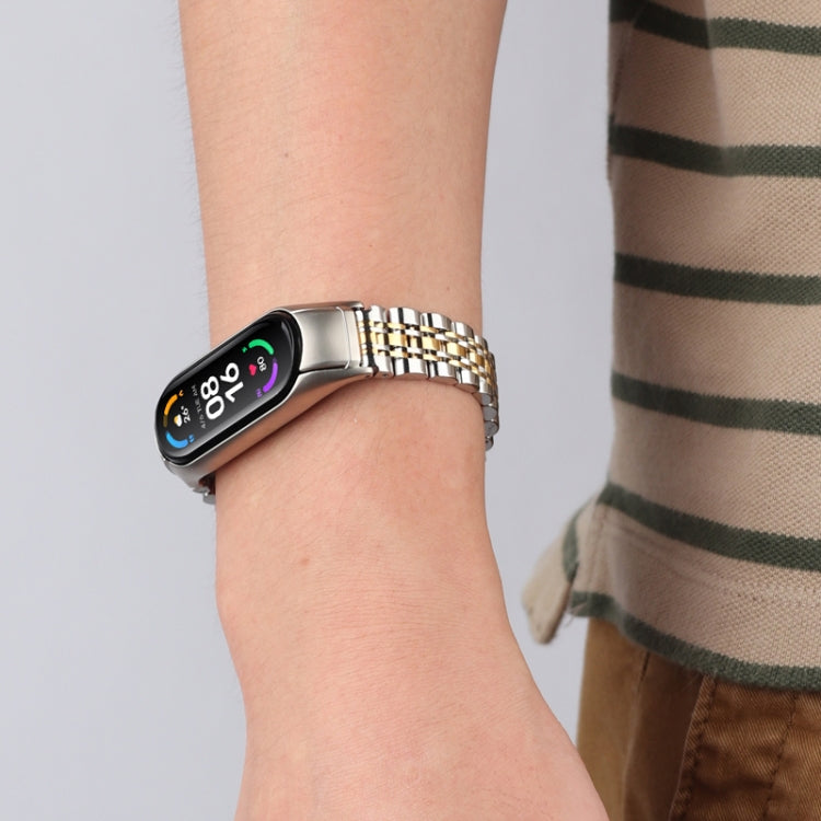 Para Xiaomi Mi Band 6/5 Band de vigilancia de acero inoxidable de siete cuentas (oro plateado)