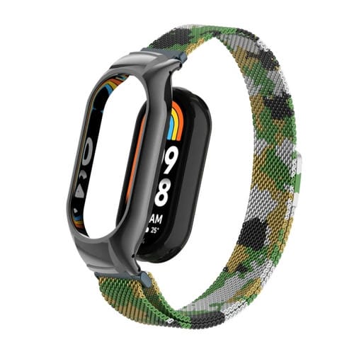 Caja de Metal Integrada para Xiaomi Mi Band 8 + Banda Magnética Milanesa (Verde Militar)