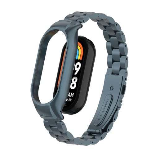 Caja de Metal Integrada para Xiaomi Mi Band 8 + Correa de Reloj de Tres Cuentas (Gris Titanio)