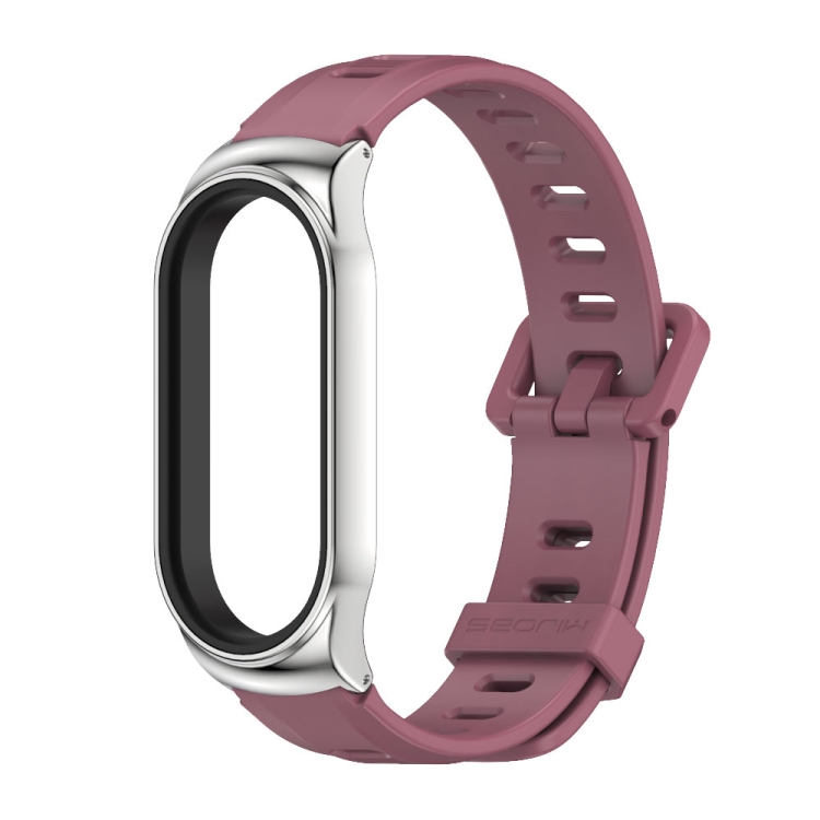 Estuche para Xiaomi Mi Band 8 Mijobs Cs con Orificio Plano y Banda de Silicona (Vino Rojo Plateado)