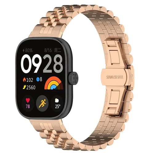 Correa de Reloj Metal para Xiaomi Mi Band 8 Pro con Hebilla de Mariposa de Cinco Cuentas (Oro Rosa)
