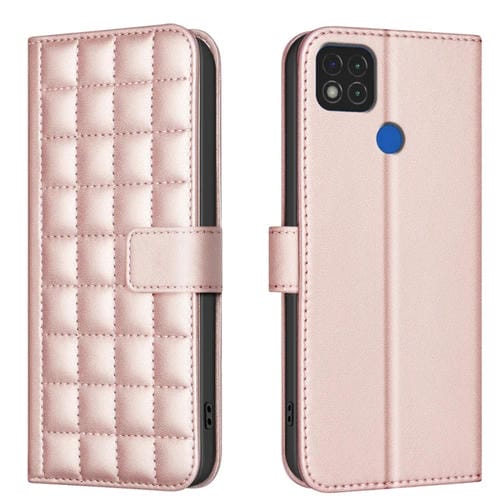 Para Xiaomi Poco C31 / Redmi 9C / 10A Funda de Cuero con Textura Cuadrada para Teléfono (Oro Rosa)