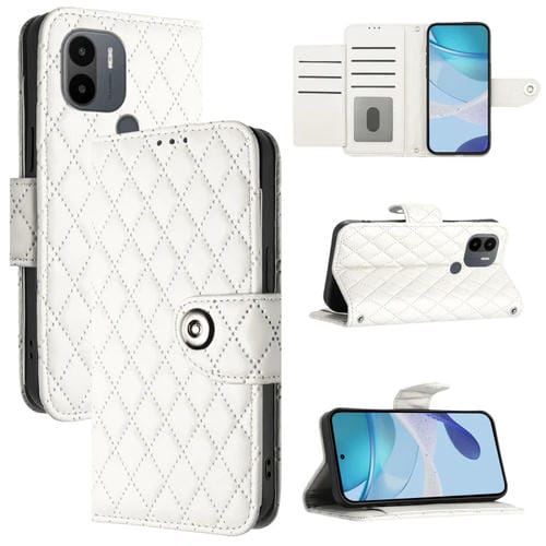 Para Xiaomi Poco C51 / C50 Funda para Teléfono con Tapa de Cuero con Textura Romboidal y Cordón (Blanco)