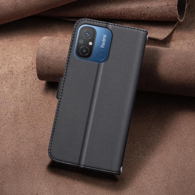 Para Xiaomi Poco C55 / Redmi 12C Funda de Cuero para Teléfono con Textura Cuadrada (Negro)