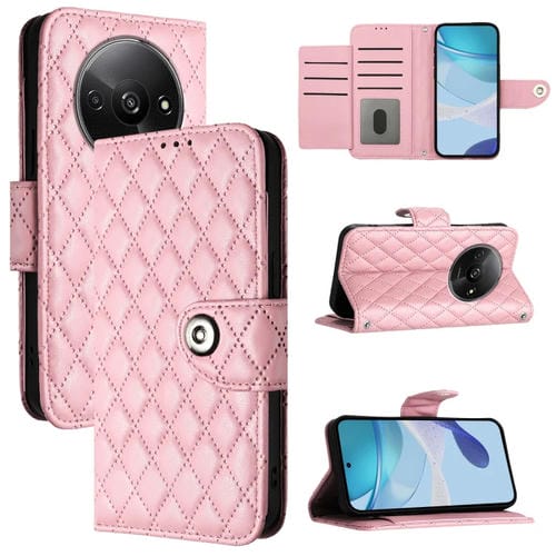 Para Xiaomi Poco C61 Funda para Teléfono de Cuero con Tapa con Textura Rómbica y Cordón (Rosa)