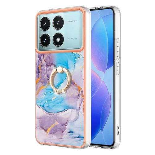 Para Xiaomi Poco F6 Pro 5G Estuche a Prueba de Golpes con Patrón de Galvanoplastia Imd TPU con Soporte de Anillo de Diamantes de Imitación (Mármol Azul Vía Láctea)
