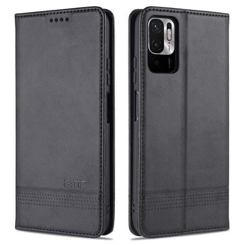 Para Xiaomi Poco M3 Pro 5G Azns Magnético Calva de la Textura Horizontal Flip Funda de Cuero con Ranuras y Soporte para Tarjeta y Billetera (Negro)