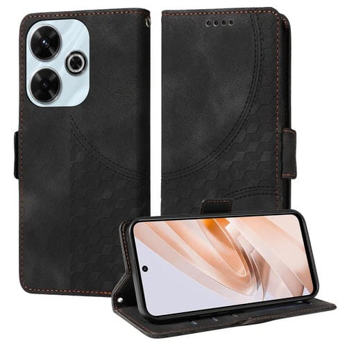 Para Xiaomi Poco M6 4G Funda de Teléfono de Cuero Estrellado con Rombos En Relieve (Negro)