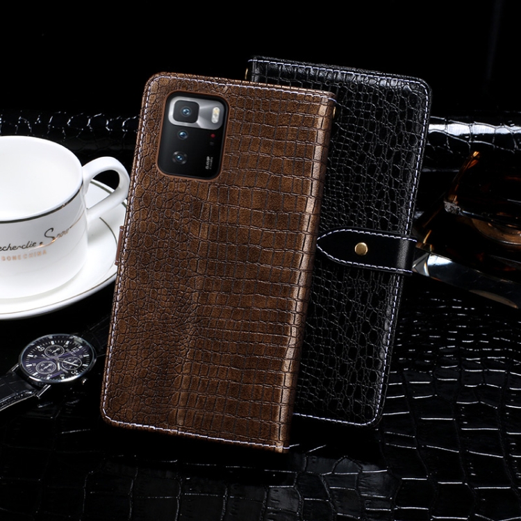 Para Xiaomi POCO X3 GT IDEWEI CROCODILE TEXTURE Horizontal Flip Funda de cuero con soporte y ranuras para tarjeta y billetera (Negro)