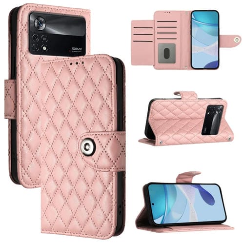 Para Xiaomi Poco X4 Pro 5G Funda para Teléfono con Tapa de Cuero con Textura Romboidal y Cordón (Rosa Coral)