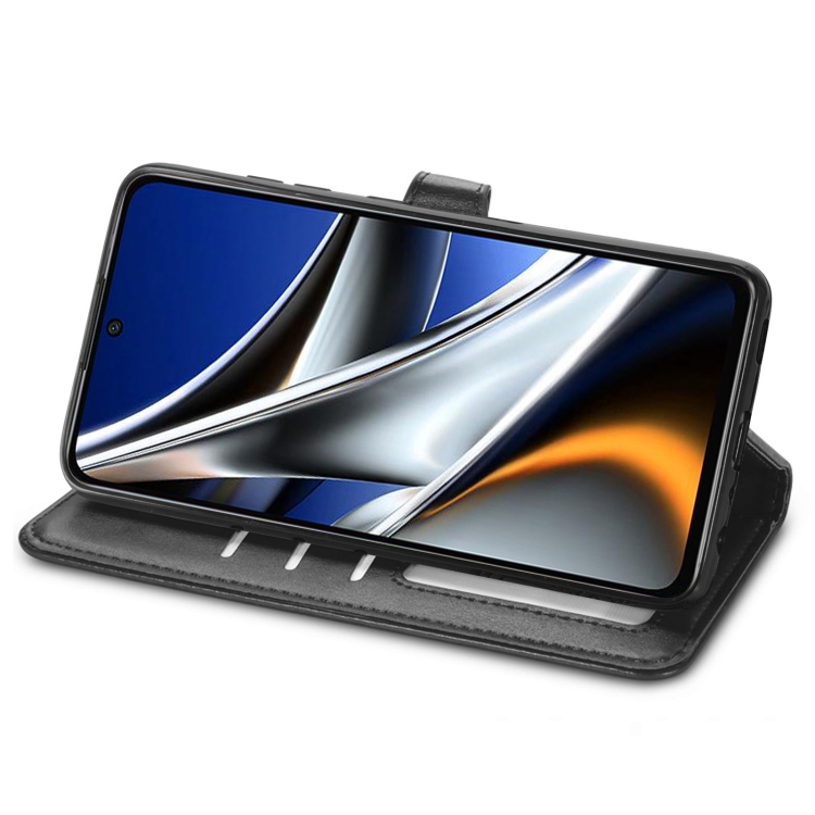 Para Xiaomi Poco X4 Pro 5G Retro Color Sólido Color Hebilla Caja de cuero (Negro)