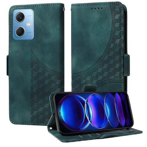Para Xiaomi Poco X5 Funda para Teléfono de Cuero Estrellado con Rombos En Relieve (Verde)