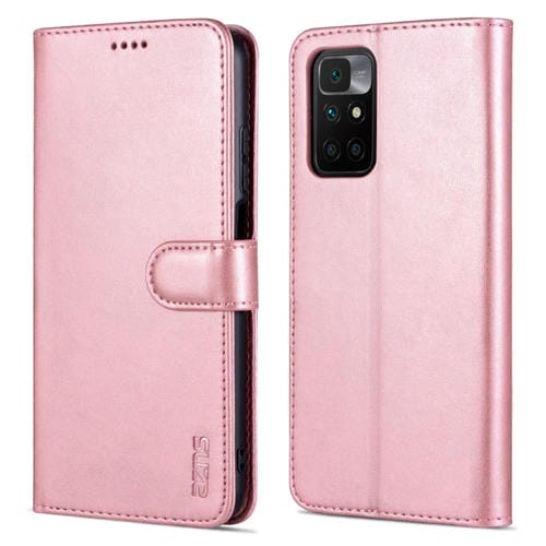 Para Xiaomi Redmi 10 Azns Siente la Piel con la Textura de la Carne de Cuero Horizontal Flip Funda con Ranuras y Soporte para Tarjetas y Billetera (Oro Rosa)