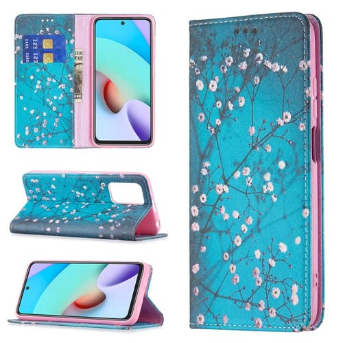 Para Xiaomi Redmi 10 Patrón de Dibujo de Color Invisible Magnético Horizontal Flip Pu Funda de Cuero con Soporte y Ranuras para Tarjetas (Plum Blossom)