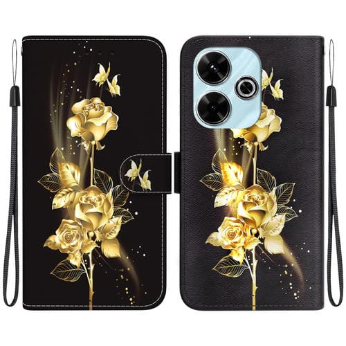 Para Xiaomi Redmi 13 4G Funda de Cuero para Teléfono con Dibujo Coloreado con Textura de Cristal (Mariposa Dorada Rosa)