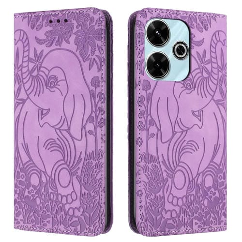Para Xiaomi Redmi 13 4G Funda de Teléfono de Cuero con Relieve de Elefante Retro (Púrpura)