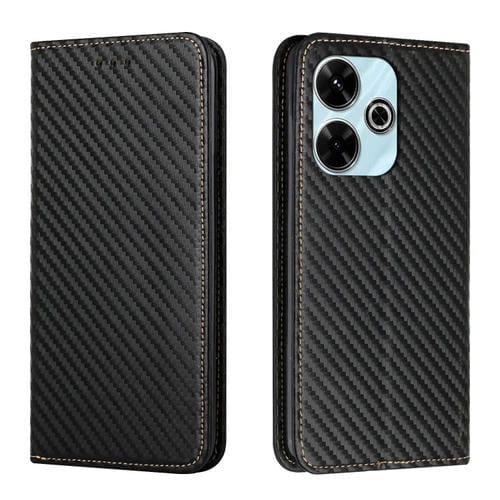 Para Xiaomi Redmi 13 4G Funda de Teléfono de Cuero con Tapa Magnética con Textura de Fibra de Carbono (Negro)