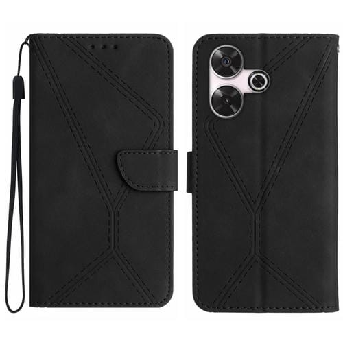 Para Xiaomi Redmi 13 4G Funda de Teléfono de Cuero En Relieve con Costuras Globales (Negro)