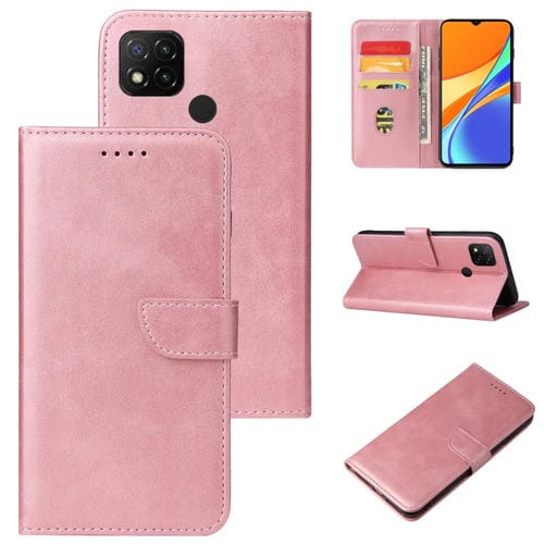 Para Xiaomi Redmi 9C Texture Texture Hebillo Funda de Cuero Hebilla Horizontal con Soporte y Tragamonedas y Billetera (Oro Rosa)