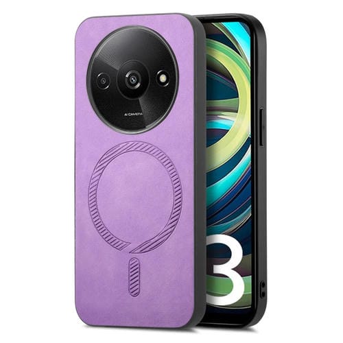 Para Xiaomi Redmi A3 Color Sólido Retro Magsafe Pu Funda para Teléfono con Contraportada (Púrpura)