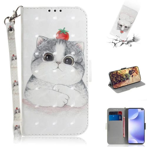 Para Xiaomi Redmi K30 3D Painting Funda de Cuero con Tapa Horizontal con Soporte y Ranura para Tarjeta y Billetera y Cordón (Gato Lindo)