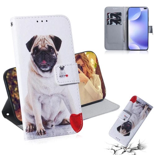 Para Xiaomi Redmi K30 Funda de Cuero con Tapa Horizontal de Dibujo En 3D con Soporte, Ranura para Tarjeta y Billetera (Pug)