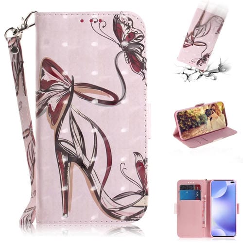 Para Xiaomi Redmi K30 Funda de Cuero con Tapa Horizontal de Pintura 3D con Soporte y Ranura para Tarjeta y Billetera y Cordón (Mariposa y Tacones Altos)