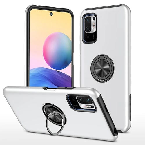 Para Xiaomi Redmi Note 10 5G PC + TPU Funda de Teléfono Magnético a Prueba de Golpes con Titular de Anillo Invisible (Plata)