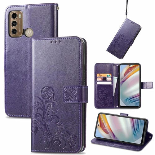 Para Xiaomi Redmi Note 10 Pro 5G / Poco X3 Gt Cierre de Cuatro Hojas con Hebilla En Relieve Protección de Teléfono Móvil Funda de Cuero con Cortante y Ranura para Tarjeta y Función de Soporte y Soporte (Púrpura)