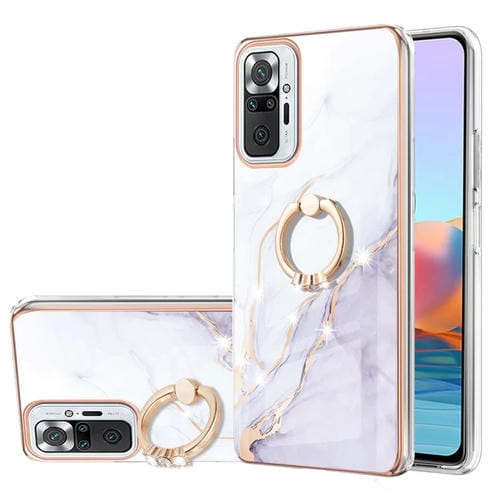 Para Xiaomi Redmi Note 10 Pro / Note 10 Pro Max Materplating Matle Plotty Imd TPU Funda a Prueba de Golpes con Soporte de Anillo (Blanco 006)