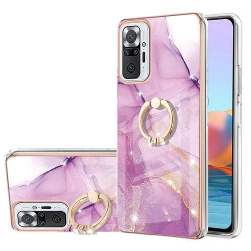 Para Xiaomi Redmi Note 10 Pro / Note 10 Pro Max Materplating Pattel Marle Materle Imd TPU Funda a Prueba de Golpes con Soporte de Anillo (Púrpura 001)