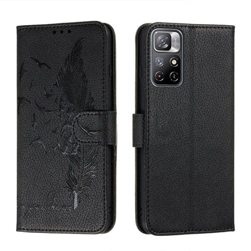 Para Xiaomi Redmi Note 11 Patrón de Plumas Litchi Texture Cuero de Cuero con Titular y Tragamonedas y Billetera (Negro)