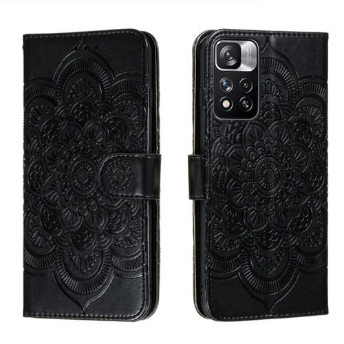 Para Xiaomi Redmi Note 11 Pro Sun Mandala Estuche de Cuero de Patrón de Nieve Mandala con Titular y Slots de Tarjetas y Filtera (Negro)