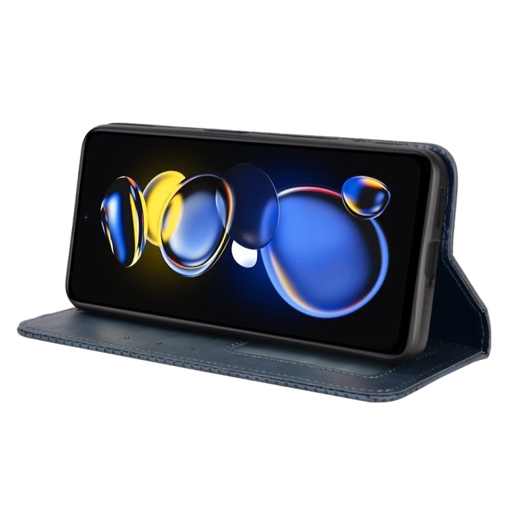Para Xiaomi Redmi Note 11T Pro 5G Hebilla magnética Textura retro Funda de cuero para teléfono (Azul)