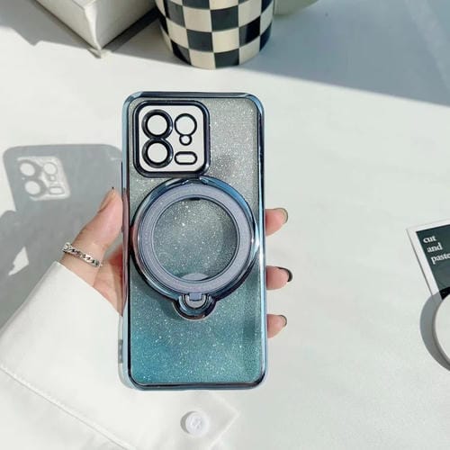 Para Xiaomi Redmi Note 12 Turbo 5G Rotación Magsafe Holder Funda para Teléfono TPU con Brillo Degradado (Azul Sierra)