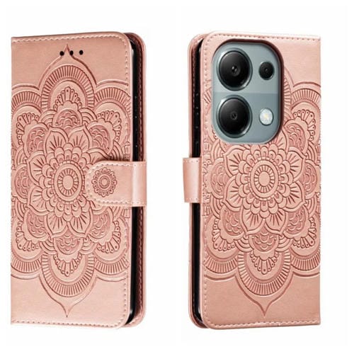 Para Xiaomi Redmi Note 13 Pro 4G Sun Mandala Funda de Cuero para Teléfono con Patrón En Relieve (Oro Rosa)