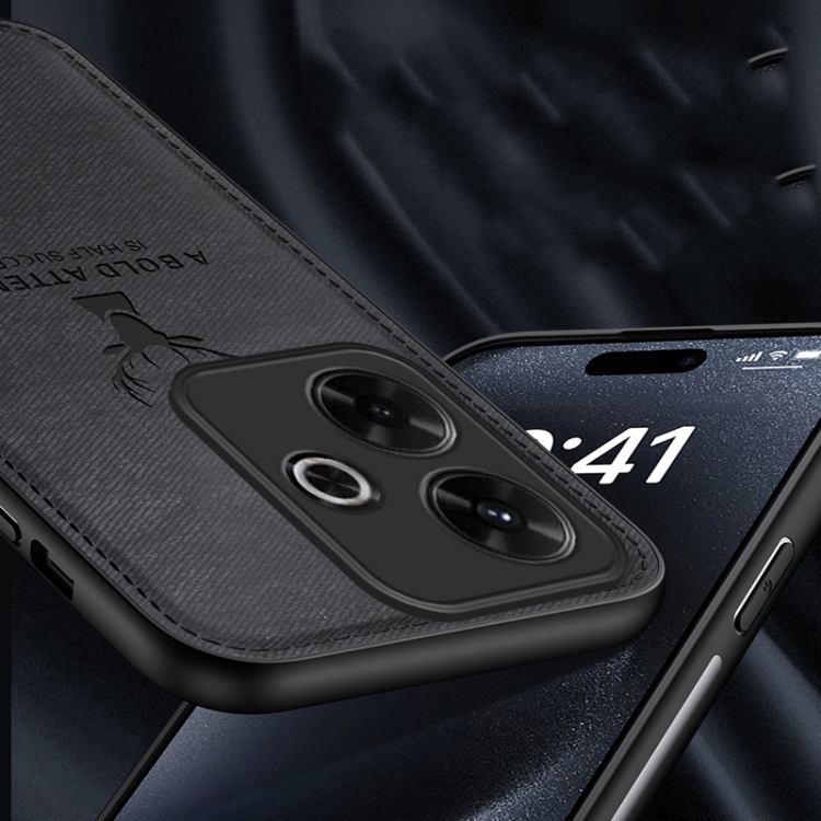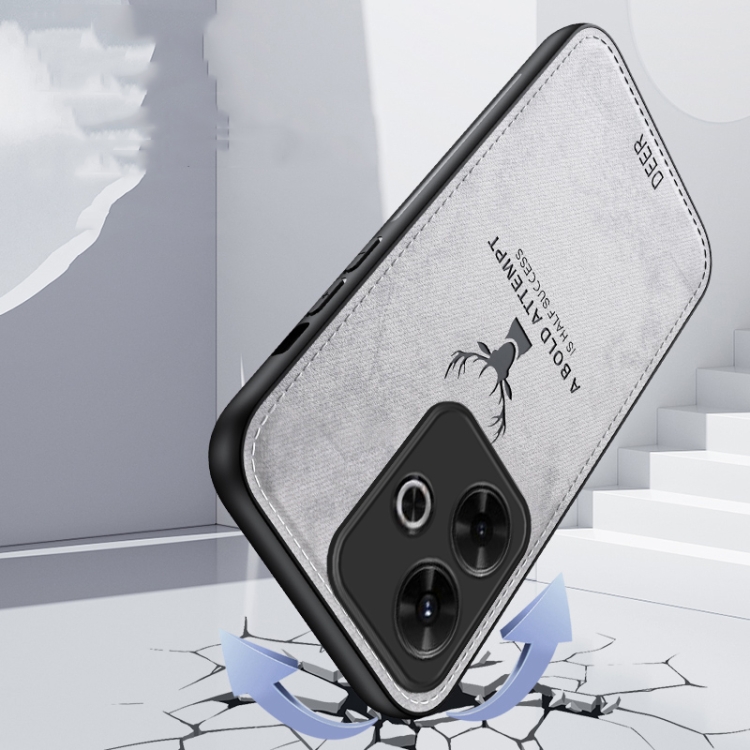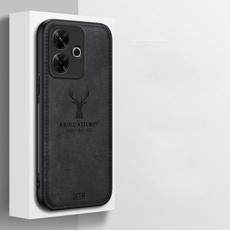 Para Xiaomi Redmi Note 13R Funda para Teléfono con Todo Incluido de Piel de Tela con Cabeza de Ciervo (Azul)