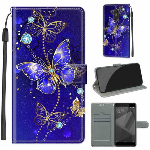 Para Xiaomi Redmi Note 4X Dibujo de Color Voltaje Dibujo Magnético Cierre de Cuero Horizontal Flip Pu Funda con Soporte y Ranuras para Tarjetas (C11 Blue Golden Cadena Mariposas)