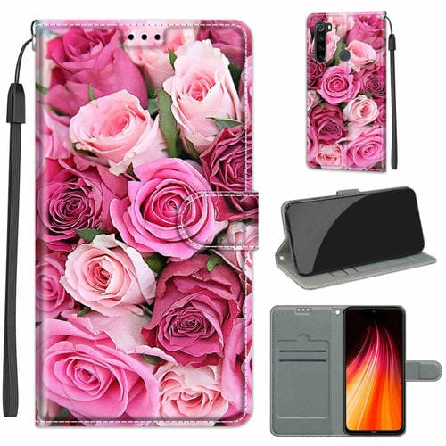 Para Xiaomi Redmi Note 8 Dibujo de Voltaje Dibujo Cierre Magnético Horizontal Flip Pu Funda de Cuero con Soporte y Ranuras para Tarjetas (C17 Hoja Verde Rosa Rosa)