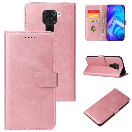Para Xiaomi Redmi Note 9 Textura de Pantorrilla Hebilla Funda de Cuero Horizontal Flip con Titular y Tragamonedas y Billetera (Oro Rosa)