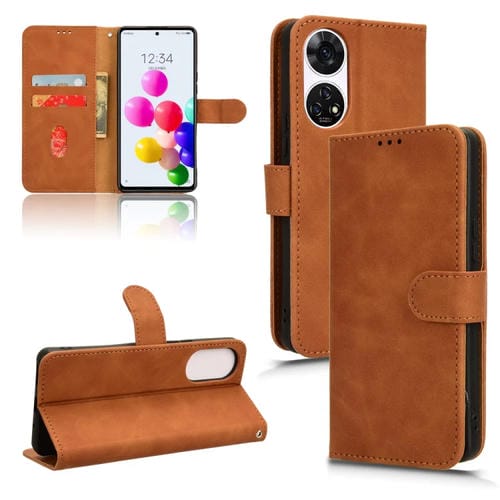 Funda de Cuero para ZTE Anshin Family Skin Feel con Tapa Magnética (Marrón)