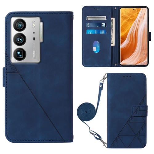 Funda de Cuero Crossbody 3D para ZTE Axon 40 Ultra con Tapa En Relieve (Azul)