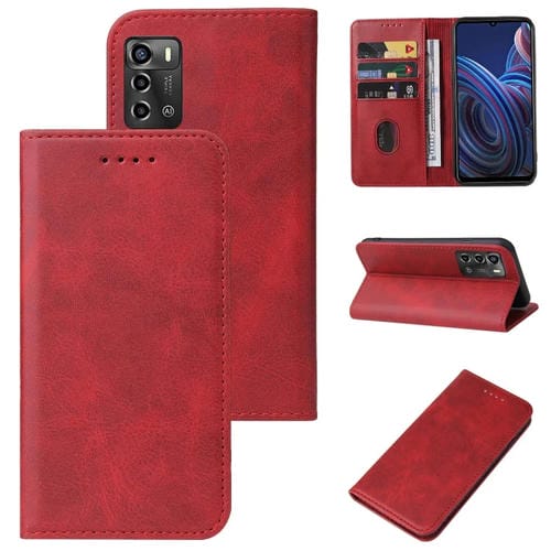 Caja de Teléfono de Cuero para ZTE Blade A72 (2022) con Cierre Magnético (Rojo)
