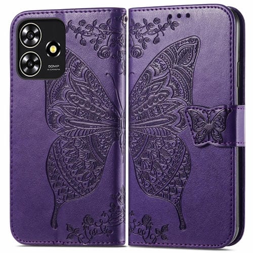 Funda para ZTE Blade A73 4G de Cuero con Relieve Flor de Amor y Mariposa (Púrpura Oscuro)