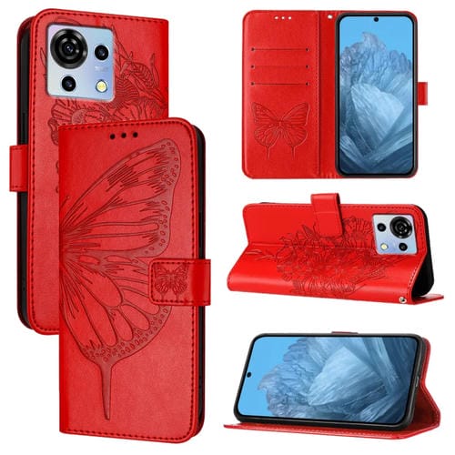 Funda de Cuero para ZTE Blade V50 Vita con Mariposa en Relieve (Rojo)