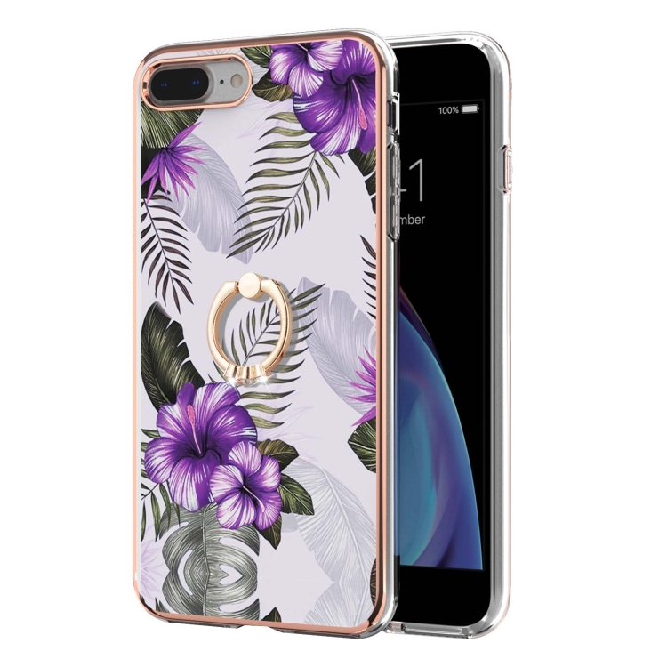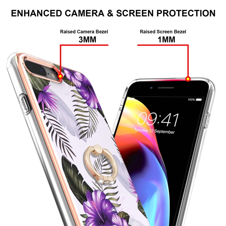 Funda TPU Patrón Galvanoplastia Imd a Prueba de Golpes con Soporte de Anillo Diamantes para iPhone 8 Plus / 7 Plus (Flor Púrpura)