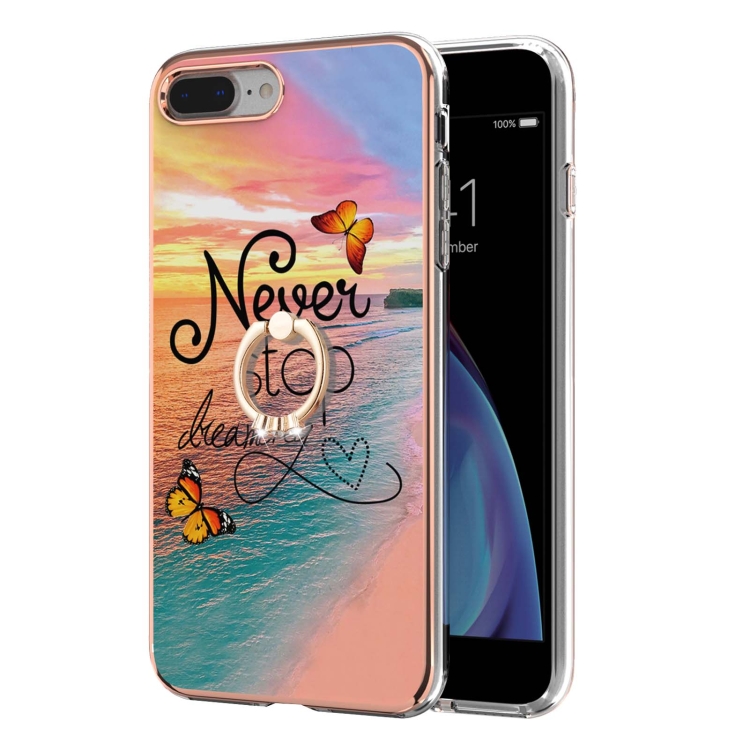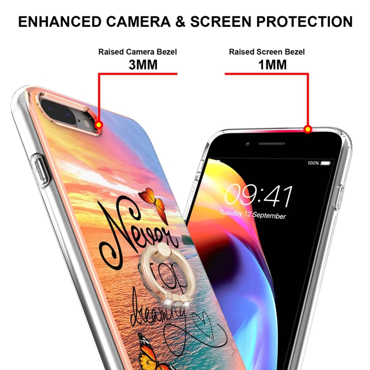 Funda a Prueba de Golpes TPU Patrón Galvanoplastia Imd con Soporte de Anillo Diamantes Imitación para iPhone 8 Plus / 7 Plus (Sueño Que Persigue Mariposa)