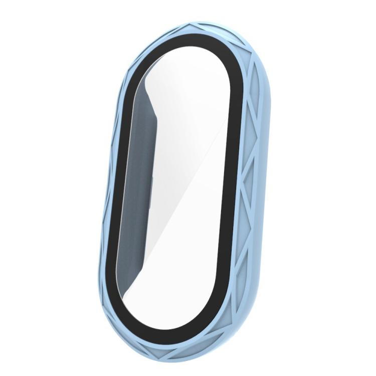 Película de vidrio templado con textura de nido de pájaro para Xiaomi Smart Band 9/9/8 NFC, funda de PC integrada (azul claro)