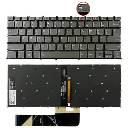 - 1x Teclado Retroiluminado Lenovo IdeaPad 5 Yoga Slim 7 Pro Versión USA Tecla F10 con Ícono de Phone (Gris)